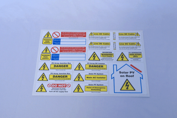 - Emergency Shut-Off Labels – Clearly indicate PV generator and AC isolators